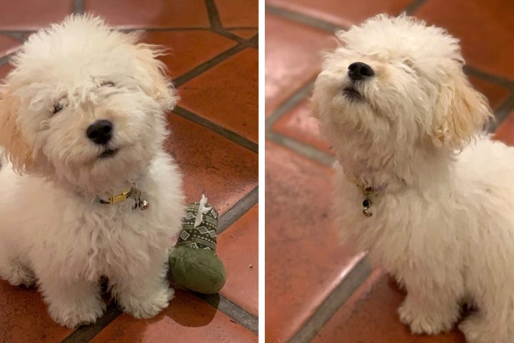 Casper is an adorable little Maltipoo puppy. Pictured here at just 5 months old, he recently celebrated his first birthday with his loving family. He enjoys playing outside, chewing, playing fetch and more.